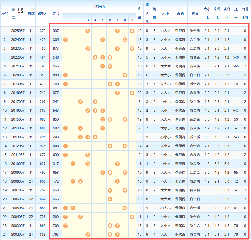 1、统计往年同期开奖号码