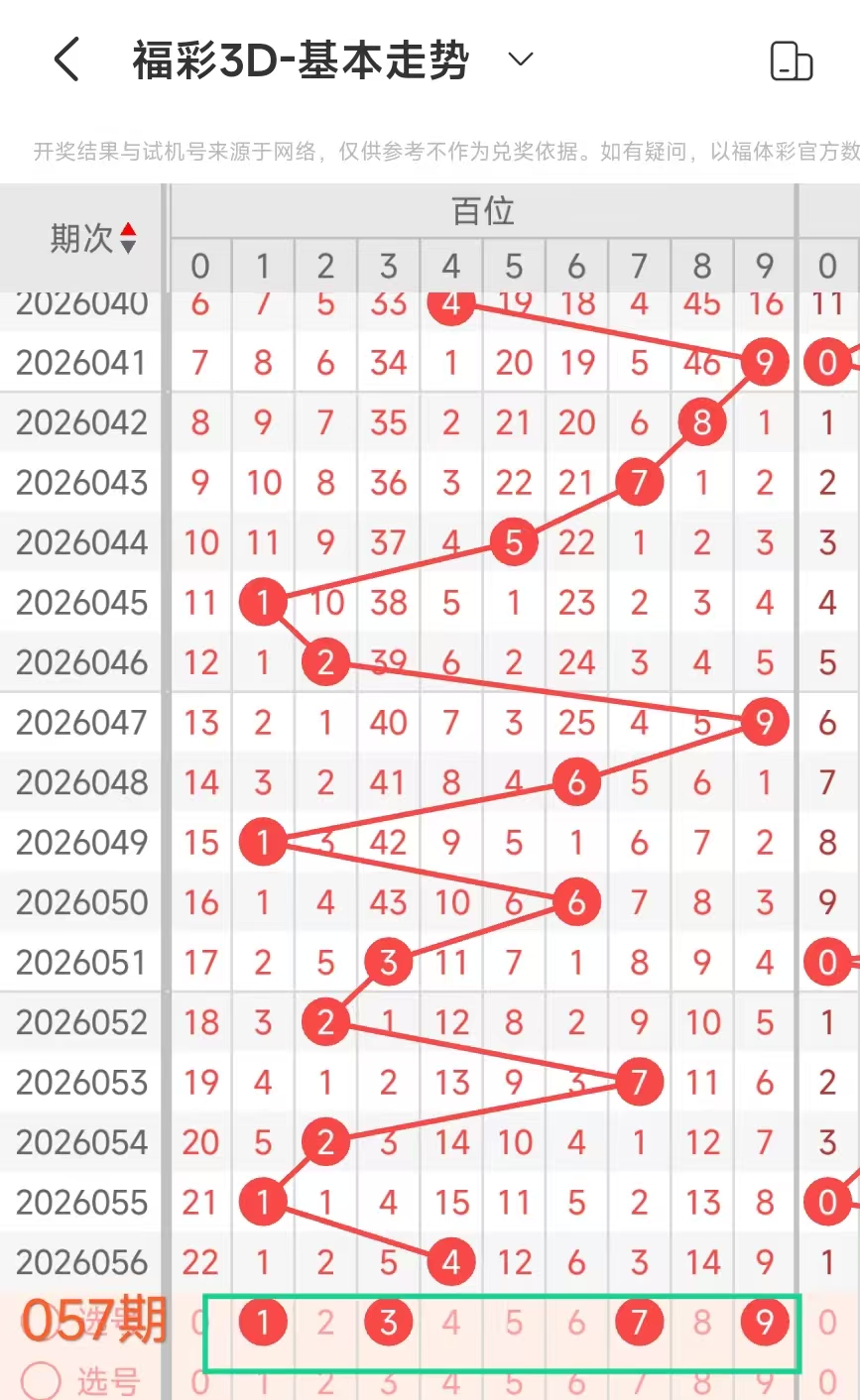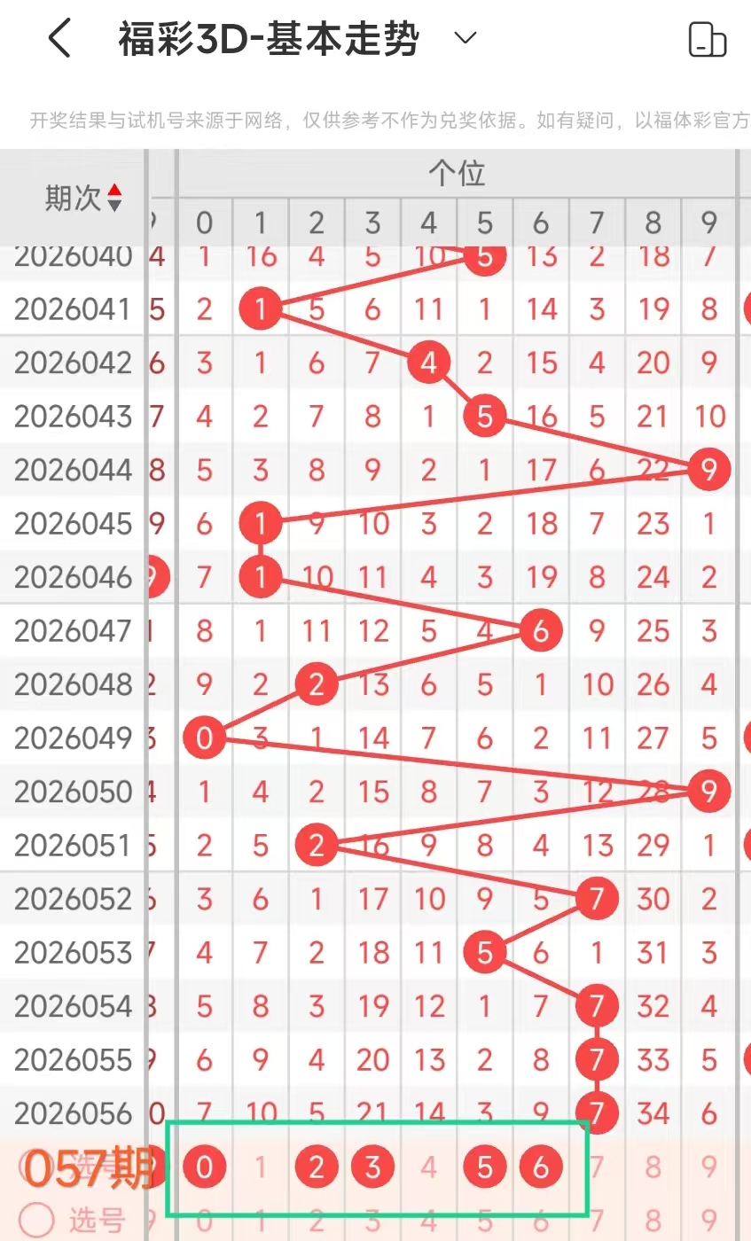 4、通过上述我们得到这期百十个位分析号码:百位01246,十位3、个位387