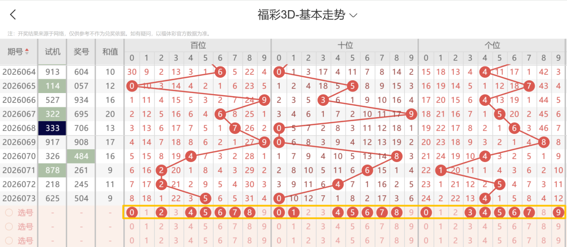 带着粉丝发大财福彩3D第26074期选号条件分析