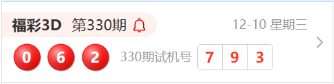 福彩3D第330期开奖结果为:062