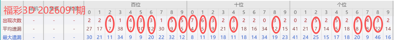 2026089期开奖号码922,我们可以看出近30期百位9出现5次,十位2出现3次,个位2出现5次。