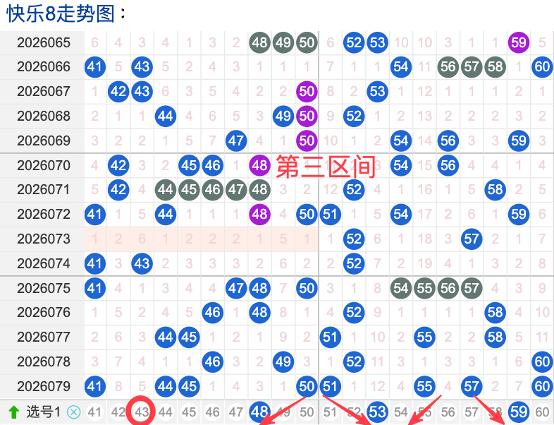 三区间开出了8个奖号(41.44.45.50.51.55.57.60)上期回顾三区开出8个奖号上期的三区间的奖号数量呈现一个递增的形态,4头开出3个号码,本期先来看号码45期出现频率相对来说还是很稳定。偶尔有时间隔期数也是很长,但是在近期的开奖中较热,号码48在近 30 期内出现次数相对较稳定的号码,近期的活跃度也是较热。号码53有一定的间歇性,通常间隔5-3期会出现一次,没有明显的连续出现态势,走势相对还不是很稳定,在整个第三区间的表现较冷本期还是可以防守的。号码59走势相对近期较温热,近期没有连续间隔落号的情况,活跃度近期处于温热状态注意防守。