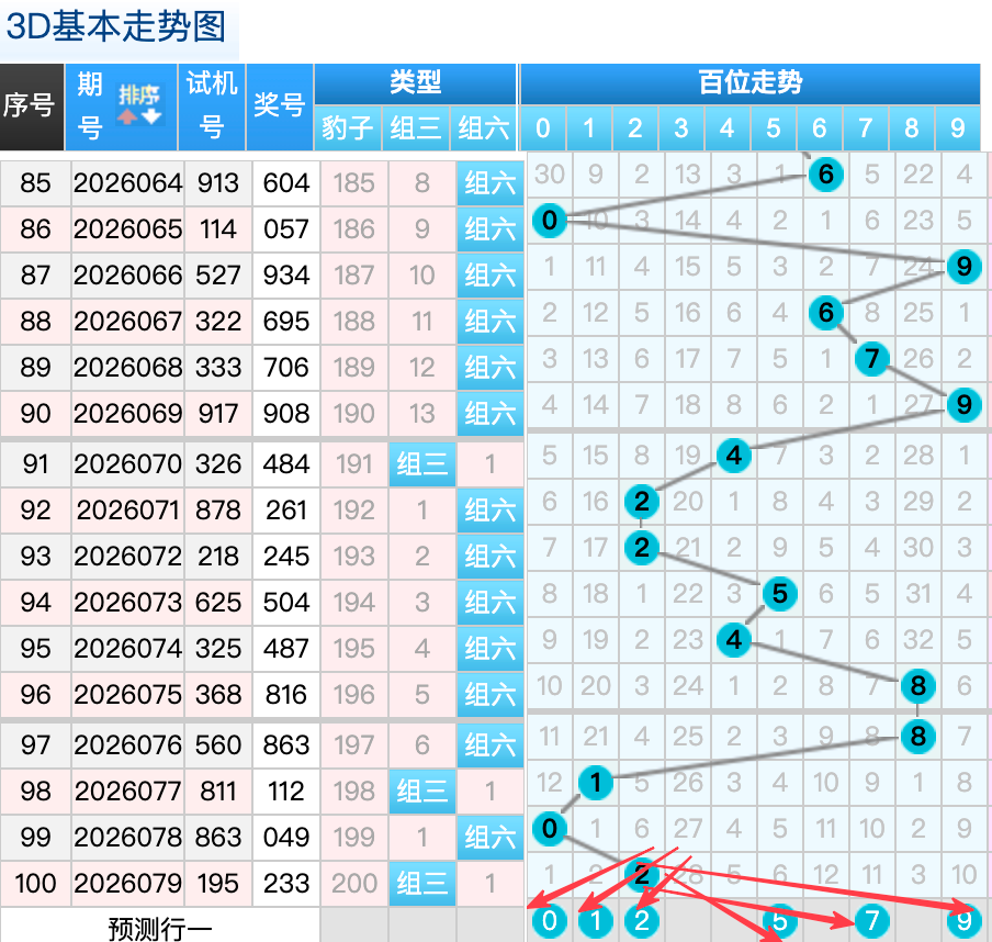3D上期百位开出2球,这个奖号2是一个热码的回补落位趋势也是一个比较好的符合百位上的落位点,先看9号球这里还是有机会继续走出一个大号码的冷回补趋势还是要注意防守的,还有一个就是1号球这里的是冷码的分边落位形态在这里的机会还是很好的要注意防守,然后0号球这里要注意是一个冷码隔期回补落位趋势注意防守,7号球和5号球在百位上要注意可能有机会走出大号码回补的概率 。