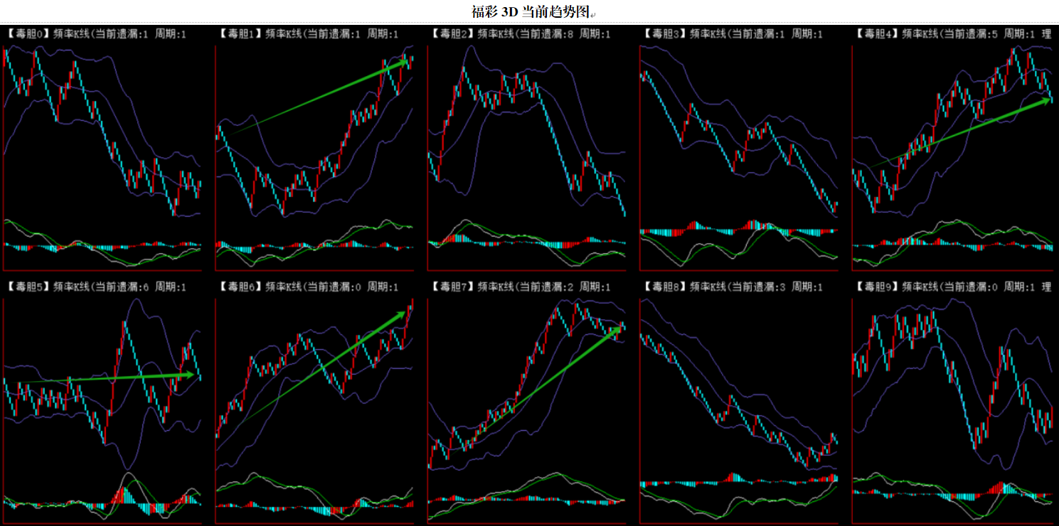 整体趋势上行,上边沿线趋势向上,下边沿趋势也是向上,节点震荡,当前连开8期,本期关注。