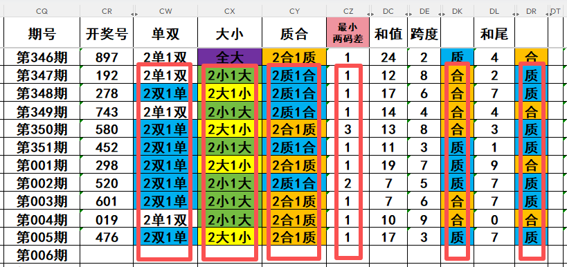 3,最近10天当中,两质一合开出5次,两合一质开出5次,全质数开出0次,全合数开出0次。当前开奖号全质号码遗漏23期,近期需重点关注开奖号全质号码的回补!