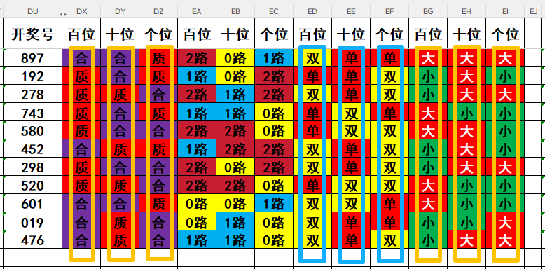 3,目前开奖号个位号码球11天当中,质数(12357)开出了5次,合数(04689)开出了6次,本期重点关注开奖号个位号码球质数的回补!