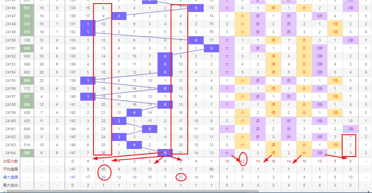 求均衡规律解释:求均衡是指如果某一个号码在一个区间长期不出现,总会在另一个期间进行回补。