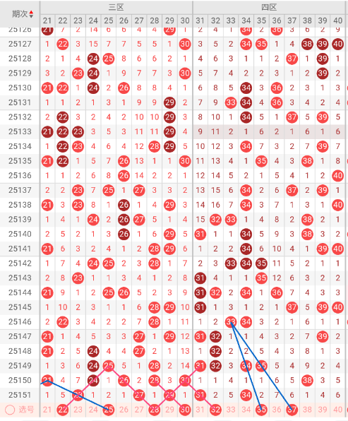 三区开出:23,27,29 奇偶比: 3:0 和值:79 跨度:6,上期开出3个号码,奇数号码占优势。本期三斜连走势:22 28 30,隔码斜连走势:25,近5期出号量:3-3-3-5-3,近10期平均出号3枚,上期奇偶比:1:4。推荐关注号码:22、25、28、30。