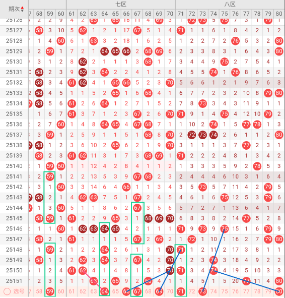 结合上期的数据分析,对快乐8第25152期的推荐如下: