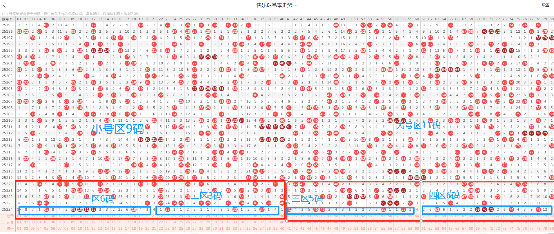 快乐8第2025225期走势分析及选号思路