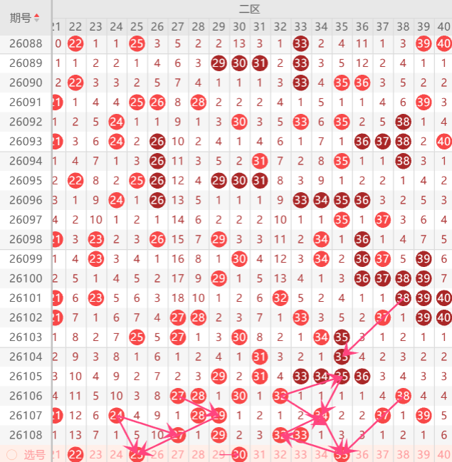二区在近期区间的走势上分析,而且整个区间现在是一个温热形态,上期二区间开出了4码,而且整个区间上期开出的形态是隔期回补斜连号和对称形态走势,上期小妹在文章中布局到了3码,那么本期二区间重点关注的形态是空位回补,斜连号下拉,隔期回补,那么本期首先注意空位回补上的23.25.35.中选择一码回补机会,而斜连号下拉位置上注意30.26中防守1码下拉机会,至于隔期回补上的21.37.39中选择一码回补机会,上期重点关注在重码走势上布局到了1码开出,那么本期重点关注在隔期回补上布局一码订胆机会,如图所示.
