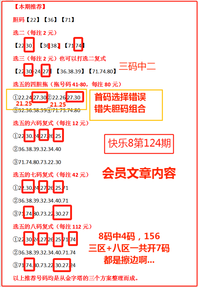 本区组合的首码选择失误,仅收获四胆中二,六胆中三。