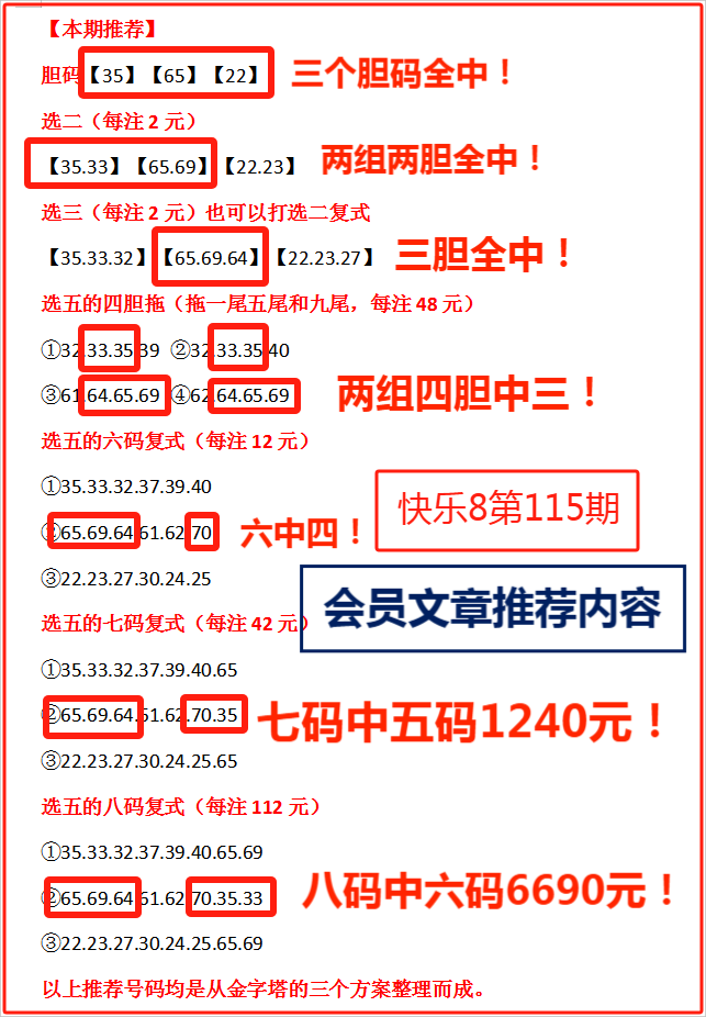选五的7码复式中5码1240元!选五的8码复式中6码6690元!