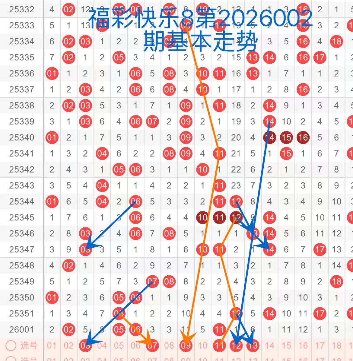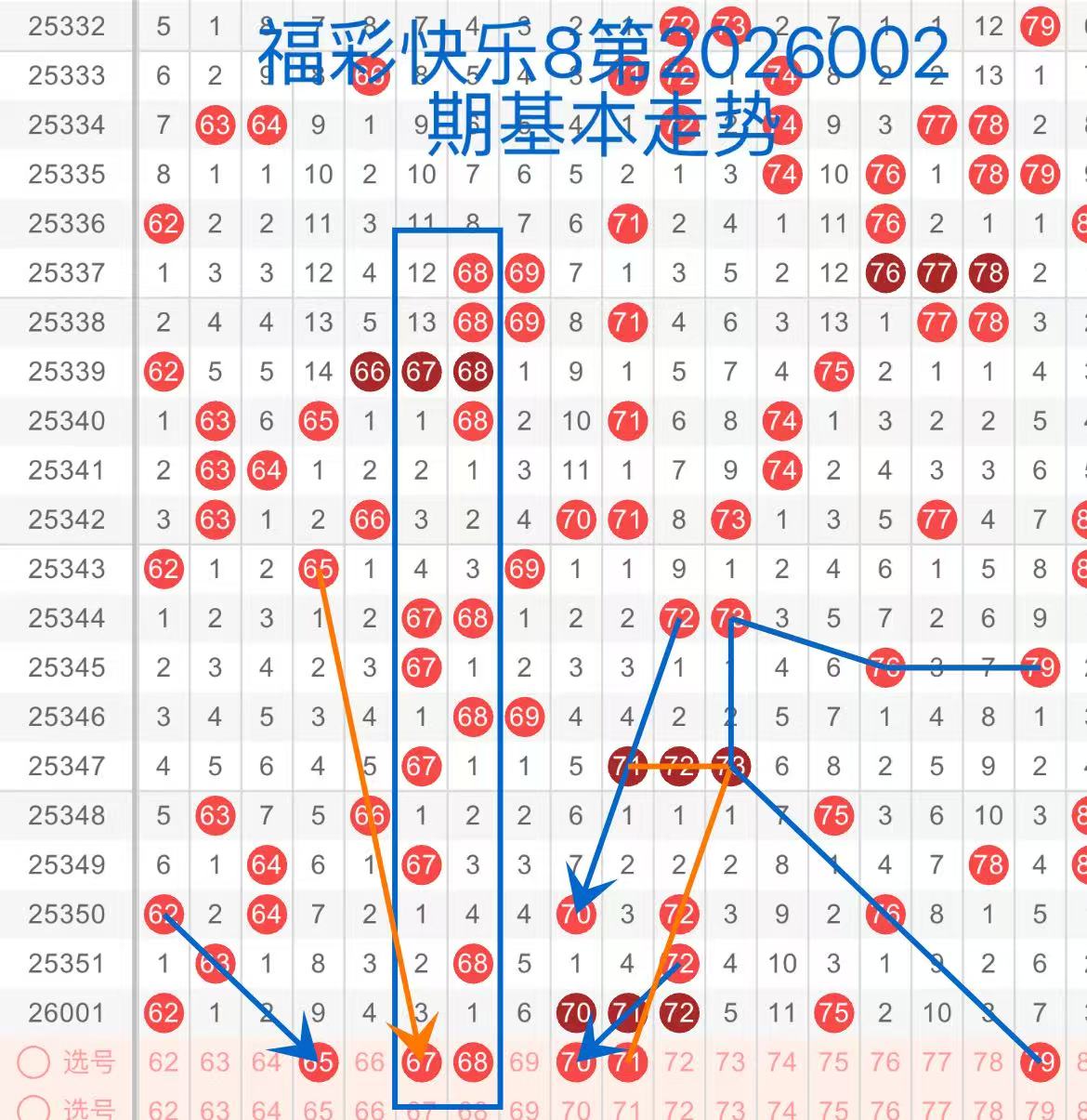 下面是我对2026002期福彩快乐8的分析和预判,希望通过我的分析能让大家今晚大满贯!福彩快乐8上期开奖号码如下图