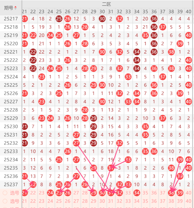 二区间注意参考的号是22.25.28.30.32.34.中关注2-3码开出机会。