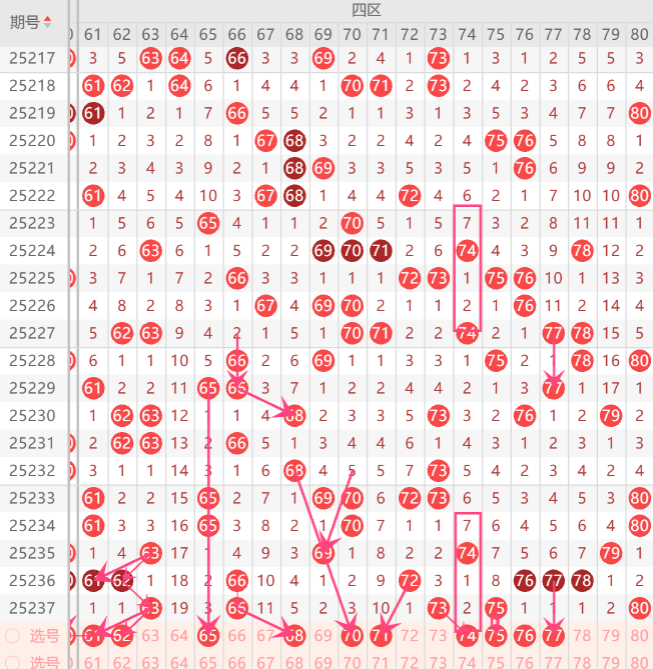四区间重点注意的号是61.62.63.65.69.73.75.76.77中参考2-3码开出机会