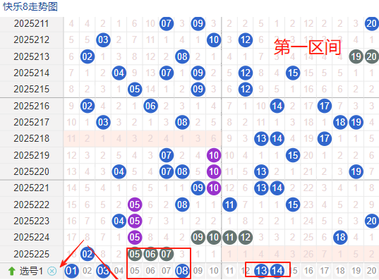 上期一区开4奖号(02.05.06.07.)上期回顾一区开4个奖号一区间的奖号在上期呈现了递减的趋势,本期先来看号码01具有一定的间歇性,近期比如有时会间隔 3 到5期次出现,整体出现频率不是很稳定的,号码08活跃度近期较。有一定的间歇性,间隔上来说的话也还是很稳定,整体走势有一定的波动性,有明显的冷热趋势变化,出现的频次近期比较.号码13活跃度相对较温热有明显的连续出现,偶尔间隔多期会出现一次整体表现较温热
