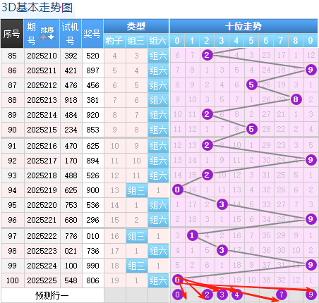 上期3D十位开出的奖号是0号,上期在十位上0号球这个号码在上期是一个小号的冷码回补的落位点同时也是一个常搭配的落位点,本期来看0号和4号球在十位上要注意这两个号码是有机会继续走出两个常搭配的落位分边号要注意研判,然后3号球还是个折返码回补形态这里的机会注意防守,再来看4号球7号球这个位置能不能继续走出冷码码回补要注意抉择一码9号球这里的折返点要注意防守了。