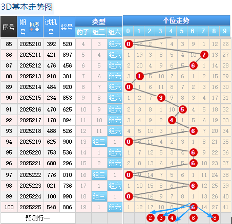3D上期百位开出的8号球,这个奖号8大号码的落位上期这里是一个热号码回补落位趋势,先来看7号球这里是一个顺位的落位点要注意参考,还有一个就是0号球和2号球这里的号码落位形态的概率在这里的机会还是很好的要注意防守,然后4号球这里是一个冷号回补的落位点要注意研判2号球的落位这里是小号码的落位点还是比较好看的。那么再来看5号球这里热号回补要注意抉择