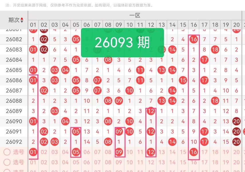 上期第一区间开奖6个号码,本期可能会减少开出。01作为区间首位号码,近期走势保持平缓,处于持续活跃的状态;05属于小数奇数,与01形成前端奇偶搭配,走势连贯性强,和前期出号节奏高度契合,能有效覆盖区间前半段出号点位。09处于一区中段位置,号码走势平稳,既避开了前期过于扎堆的出号点位,又能衔接前后号码,起到承上启下的作用;12为偶数号码,大小数值适中,在一区中段偶数点位中表现稳定,整体走势无大幅波动,适配区间整体出号规律。16位于一区后半段,属于偏大偶数,补齐了区间后半段的选号空缺。