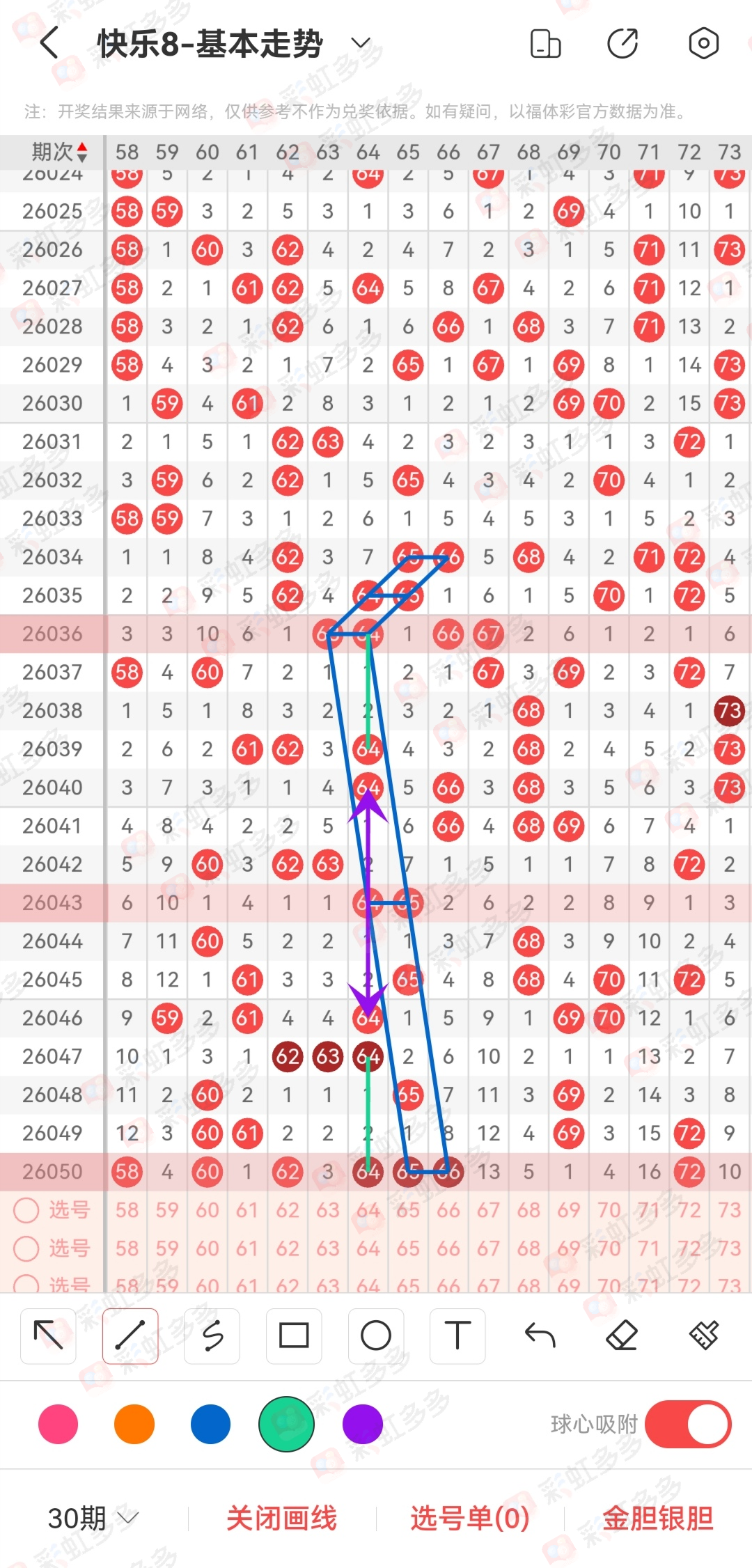 36 37 38这个位置是今天最尴尬的位置。遗漏值是竖向横向的。昨天还专门避坑了一个竖向的135。今天这里到底要不要考虑。其实这里是一个交点号码。还有别的逻辑能够发现这里,比方说昨天的41 43 45。我们在放假前遇到这样的号码就是考虑存在走重,或者说间隔规律完整存在和值顺位。另外通过一些特殊的对子点位。比方说45 46同出算是回补,11 12同出算是回补。那么这里之前高频率的37 38能不能也实现同出。所以这里的3头位置交给大家考虑。我的想法是防守。完全放弃不应该,但是主做这个位置是不理想的。数据误导还是存在的。虽然昨天的65 66正儿八经的开出来,但是比方说昨天的30 31是不是一个没有。如果这里也看成竖向横向的。那么第三个点今天应该是完全避坑。