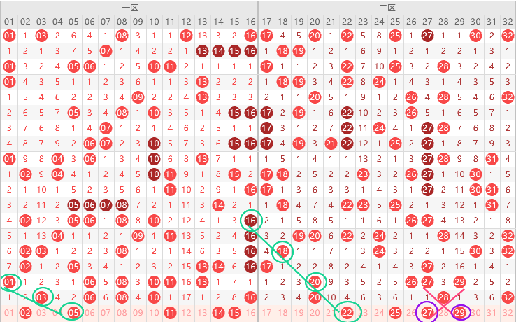 二区胆尾2尾,上期边号重号没断,本期边号19 21 27 29 31出一码,看好19 27 29三出一,形态上27 29比较看好,上图已勾画,重号不断20 28 32要出一码,如果20不出三直落就是28 32二出一,其次防18 24 ,本期关注五码18 22 24 27 29 防冷号21