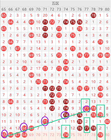 五区胆尾4尾6尾,隔2期号连出多期本期74 79符合,那么就是74 79二出一,近期冷号隔一期出一个本期冷号65 67 75三出一,65形态好看是五斜连,边号没断本期边号看67 70 75 79,重号没断看好68 78出一个,防67 68出连号,本期关注五码67 80  74 78 79