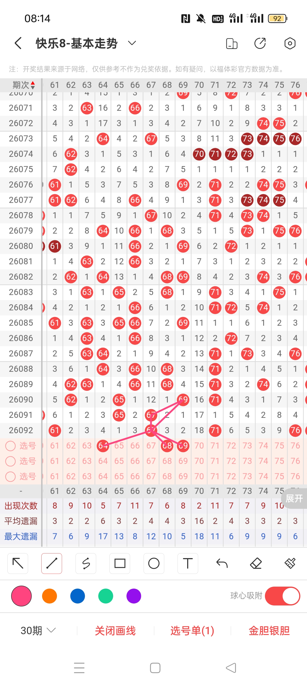 6、分区法:快乐8共分为4个区,一区:1-20,二区:21-40,三区:41-60,四区:61-80。