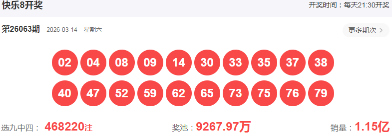 快乐8第2026063期开奖号: