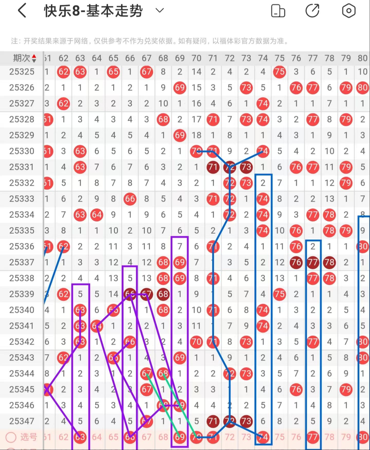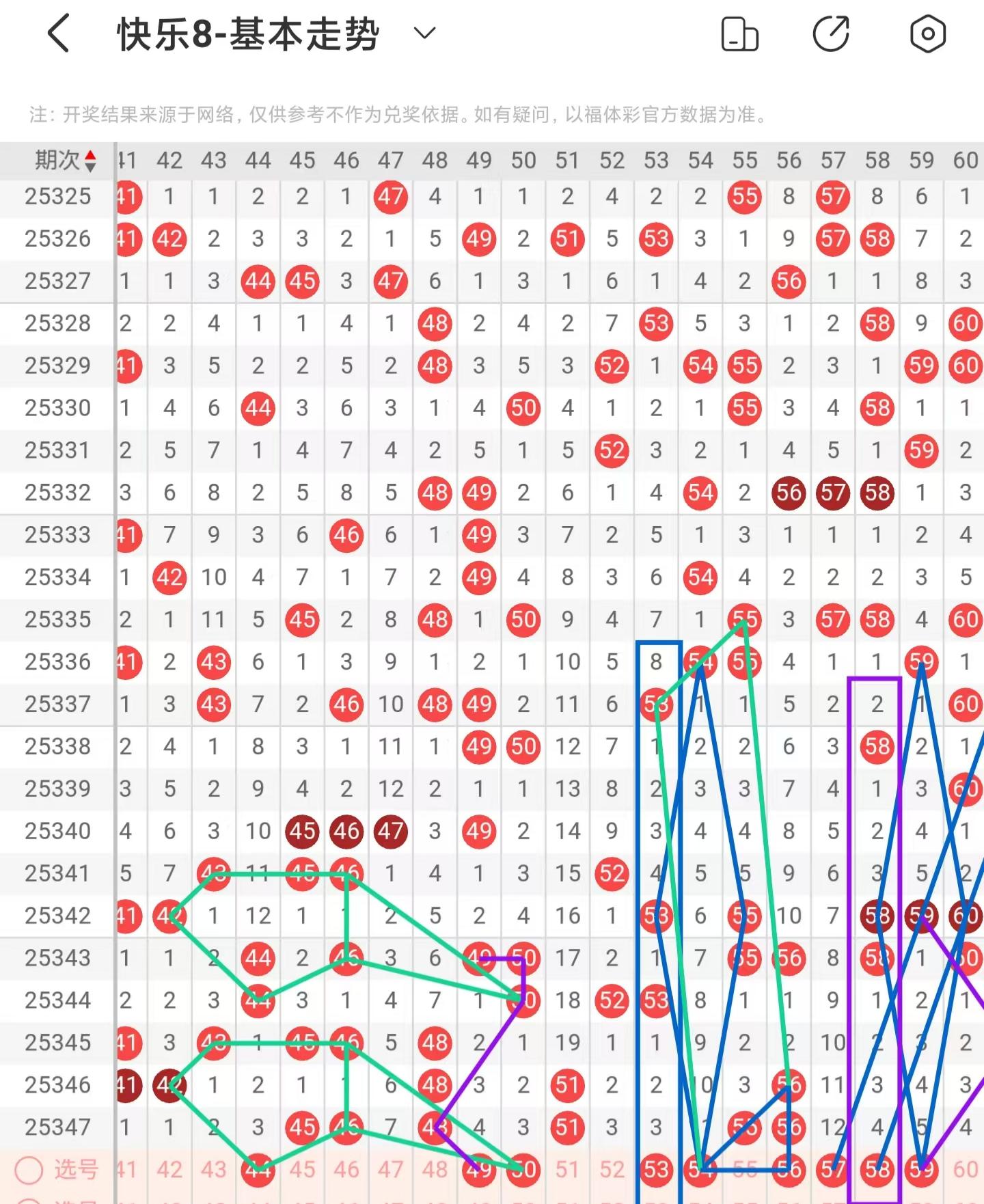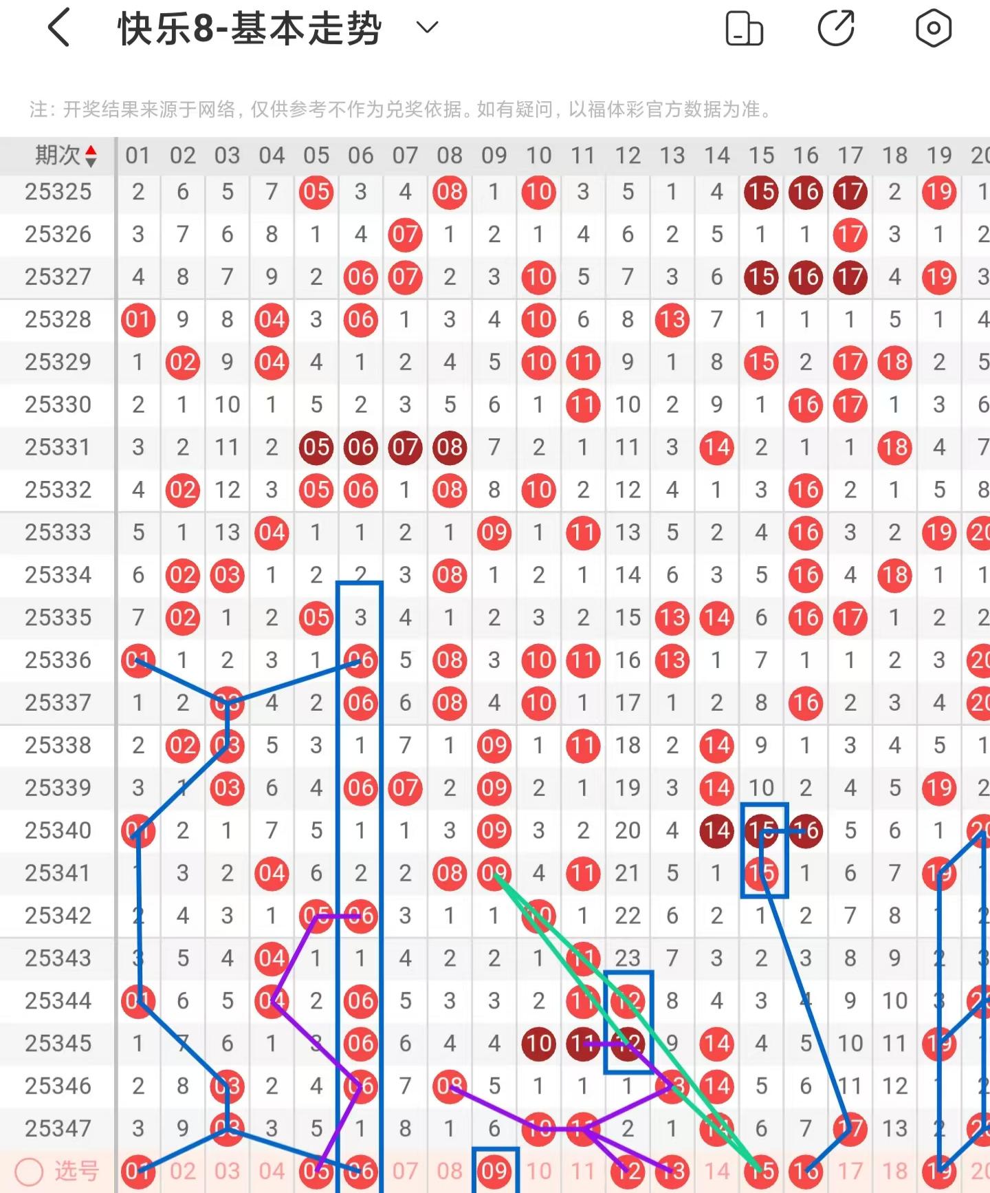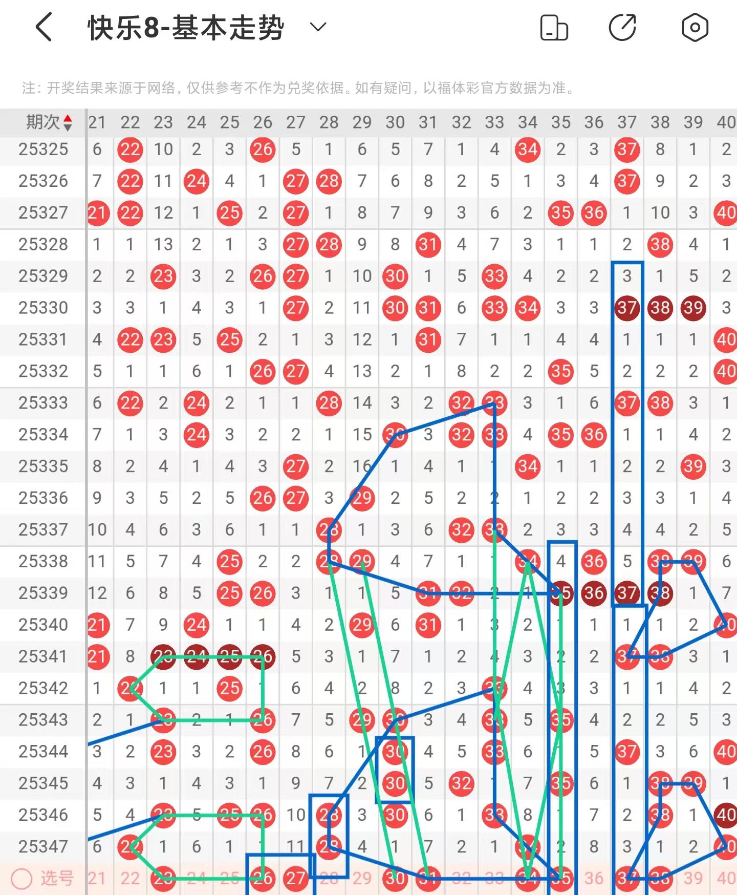 快乐八2025348期出号分析,上期区间分析选二复式中