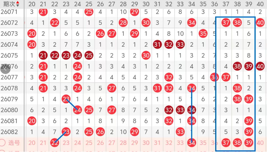 第二区间的走势分析:第二区间上期开出了六个号码球,主要的落号点位在二区间的前后半区,走出五奇一偶了的形态走势,上期二区间的前半区落下了四个号码球,后半区落下了两个号码球,整个二区间处于走热的趋势,根据二区间的走势规律,今天的二区间我们主看前半区边码22的落位,再看后半区34走出对称形态的走势,最后关注37 38 39三连码的落位,也是热码的回补,这五个号球建议大家打个五码复四,或者打个五码复三比较稳妥,参考为主!