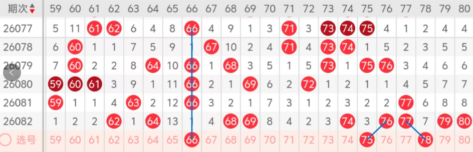 第四区间的走势分析:第四区间上期开出了九个号码球,主要的落号点位在四区间的前后半区,走出了三奇六偶的形态走势,上期四区间的前半区落下了四个号码球,后半区落下了五个号码球,整个四区间处于走热的趋势,根据四区间的走势规律,今天的四区间我们主看前半区热码66的回补,也走出了对称的形态,再看后半区75 78的落位,都是夹码的落位,也是分边码的落位,落下的机会很大,这三个号球建议大家打个三胆全拖,或者打个三码复二比较稳妥,参考为主!