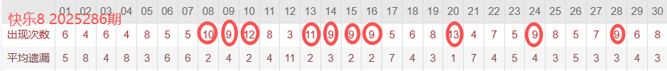 快乐8热号选择标准参考图(以30期为基准)所圈即为部分热码示意图