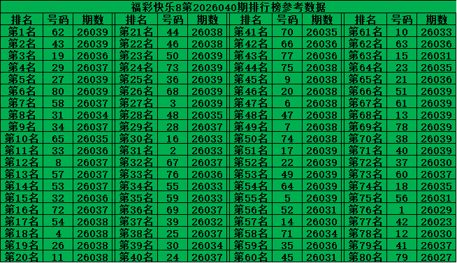 把号码分为四区:一区01-20号、二区21-40号、三区41-60号、四区61-80号,理论上每个区每期应该开出5个号码: