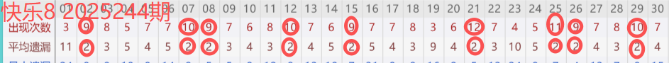 快乐8热号选择标准参考图(以30期为基准)所圈即为部分热码示意图