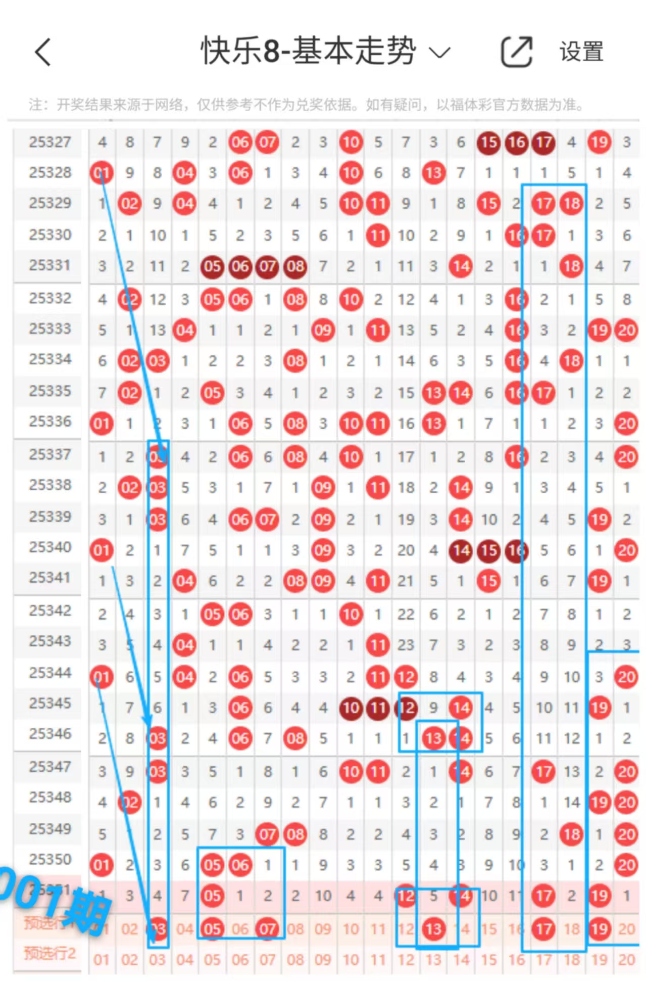 快乐八001期走势分析(本期走势不错+继续跟上吃肉)