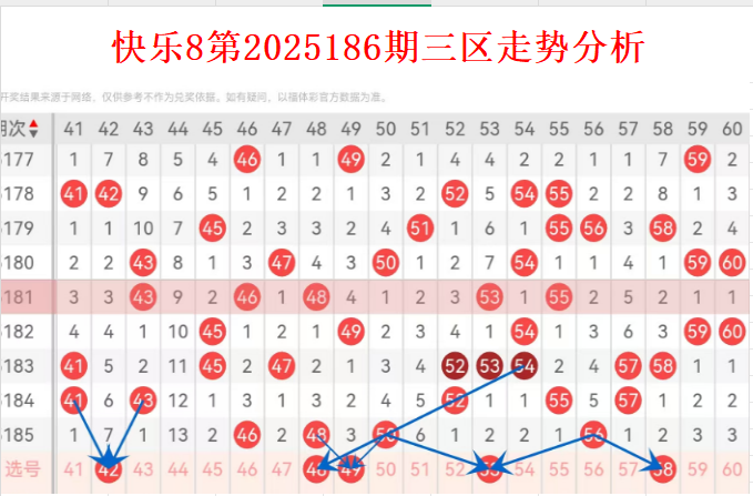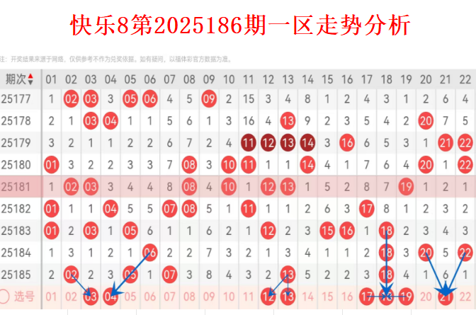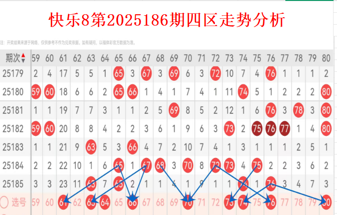 快乐8第2025186期走势,上期命中9码,内含四胆、选五复式及选十大底