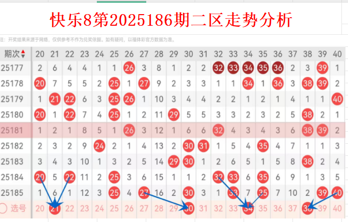 近期走势:上期开7码,但近10期二区均值4.1码,热度稳定;重点关注对称缺口26(21-25斜连)、29(以38为对称点)。