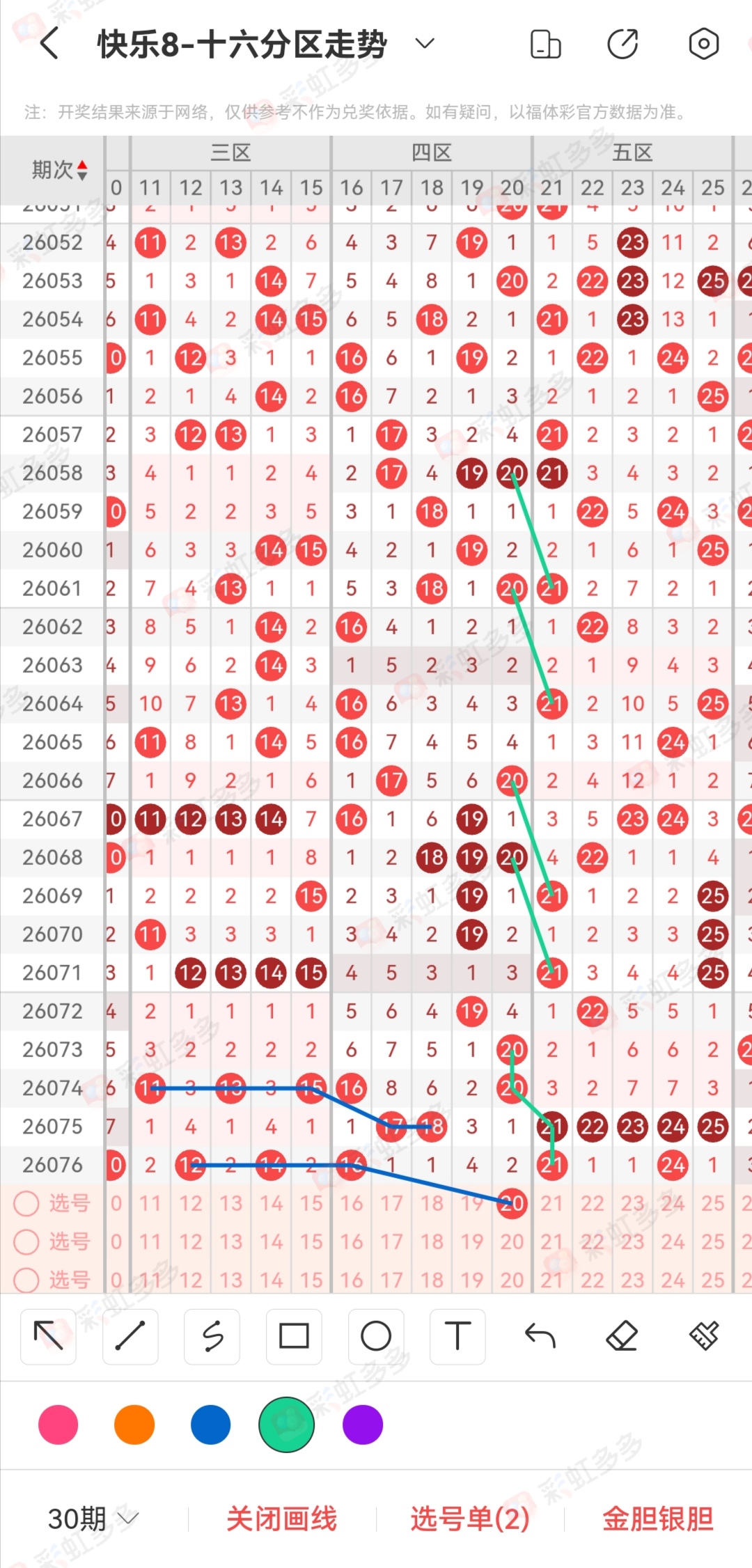 第二张图,大家心里面有个印象就行。这种71 77顺位的情况不是太常见,会有一段时间存在晚出或者顺位。短期内存在这种类型的可以预防一下。免费文章推荐52 54二选一,重心看52。选二推荐拖7头,有可能7头爆区。