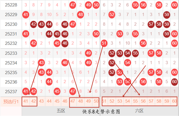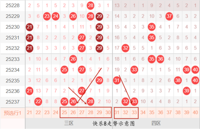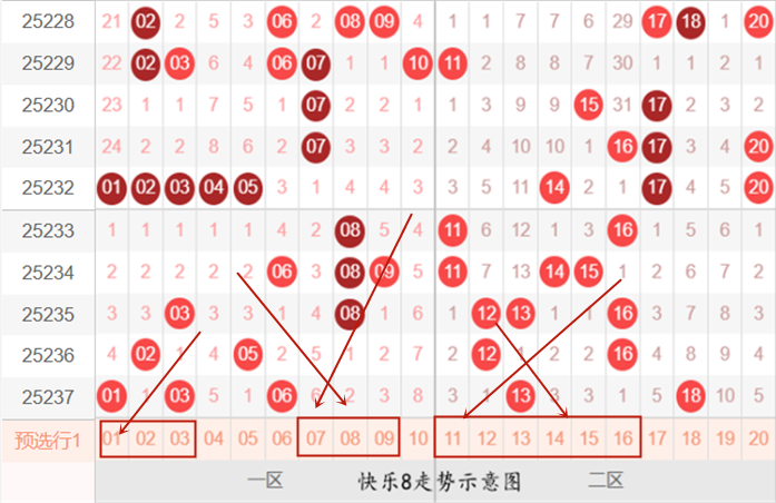 快乐8第25238期:上期重点胆码点位四中二开三码,命中选二
