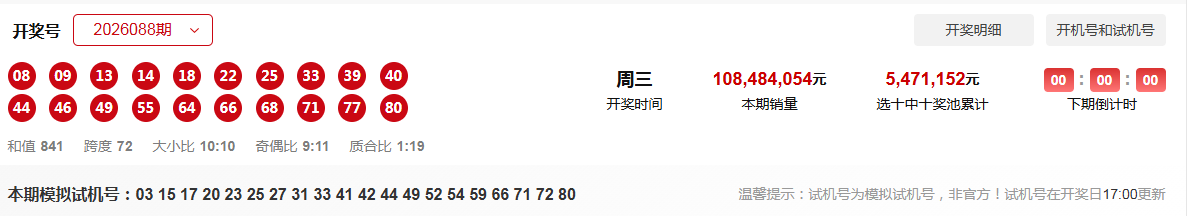 快乐8第089期:上期同尾分析命中10码,短期选三/选二复三追号再次命中