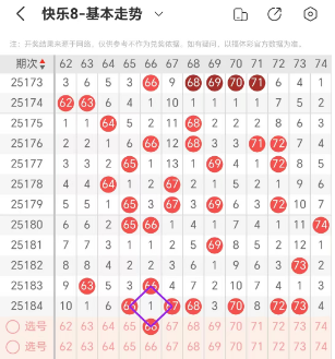 66码,如上图所示,与往期奖号65 67码形成一个正方形,所以看好。
