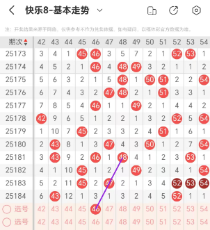 46码,遗漏间隔为2.3.3,形态为ABB,且如上图所示,与往期奖号47 48码形成一个隔1的斜3连,所以看好。