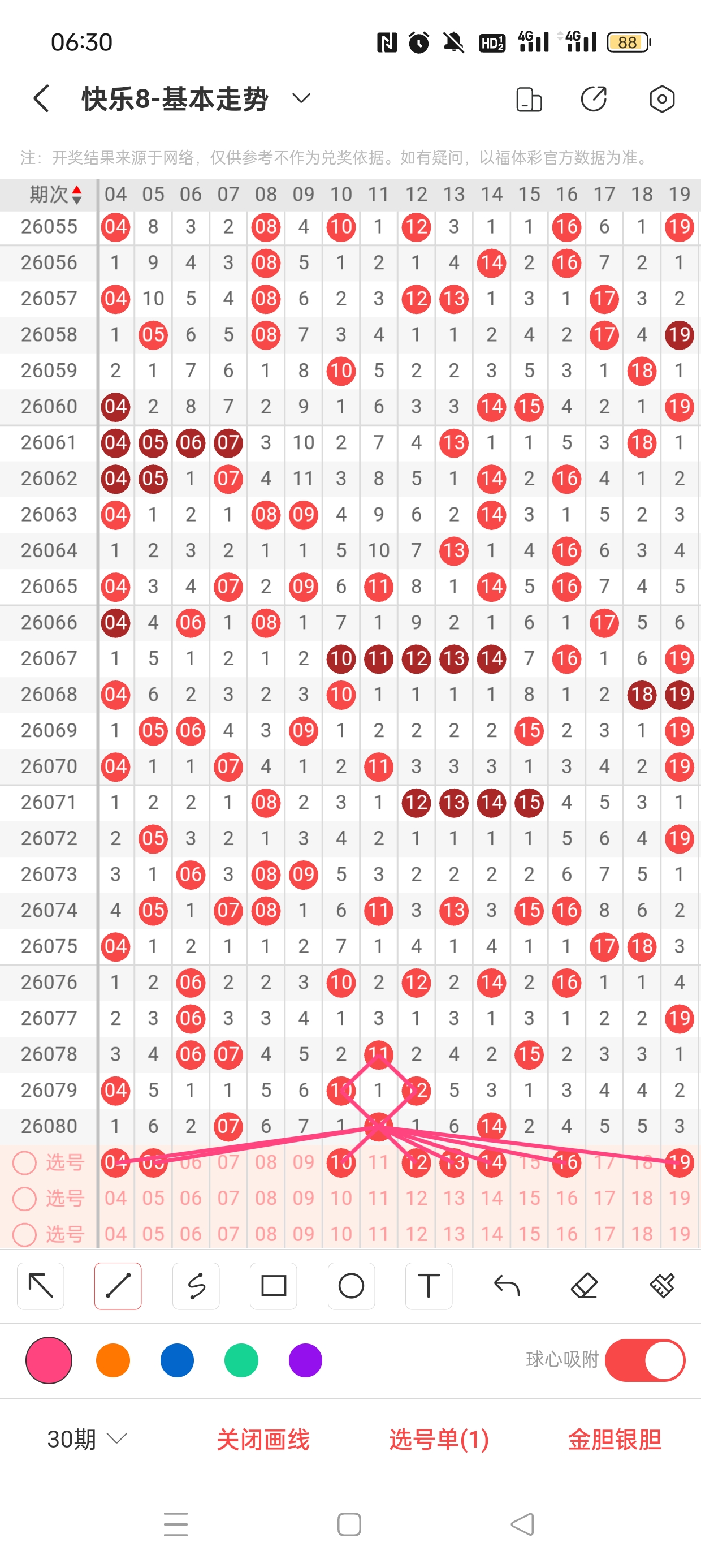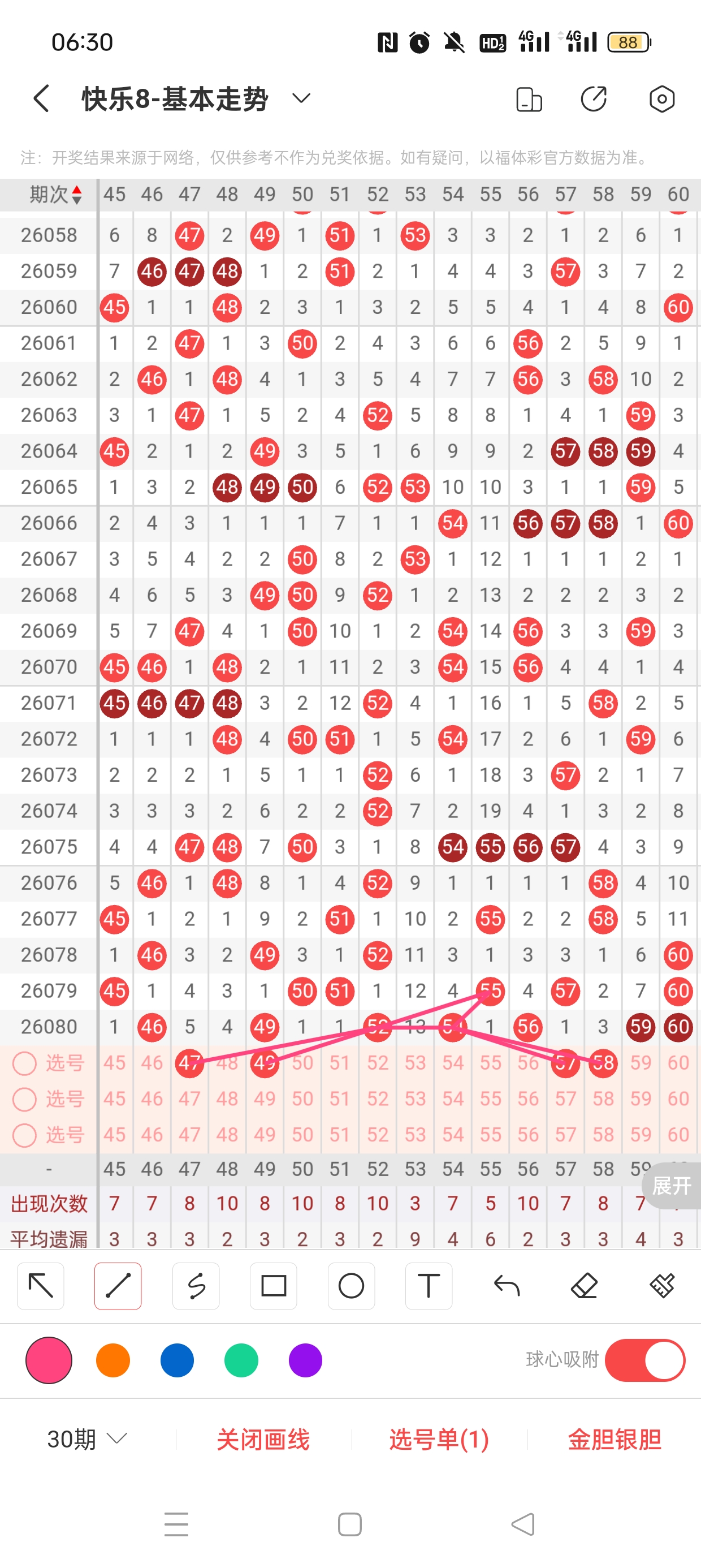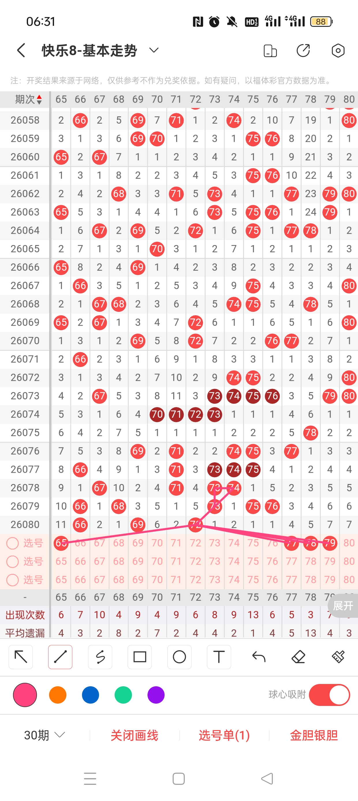 6、分区法:快乐8共分为4个区,一区:1-20,二区:21-40,三区:41-60,四区:61-80。