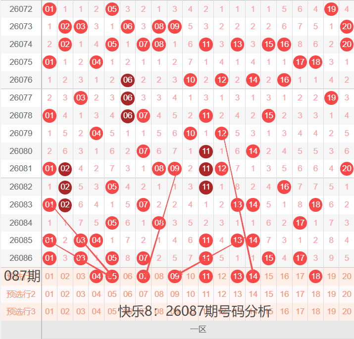 26087期,我们先看下一区间:01-20号码球,如下图: