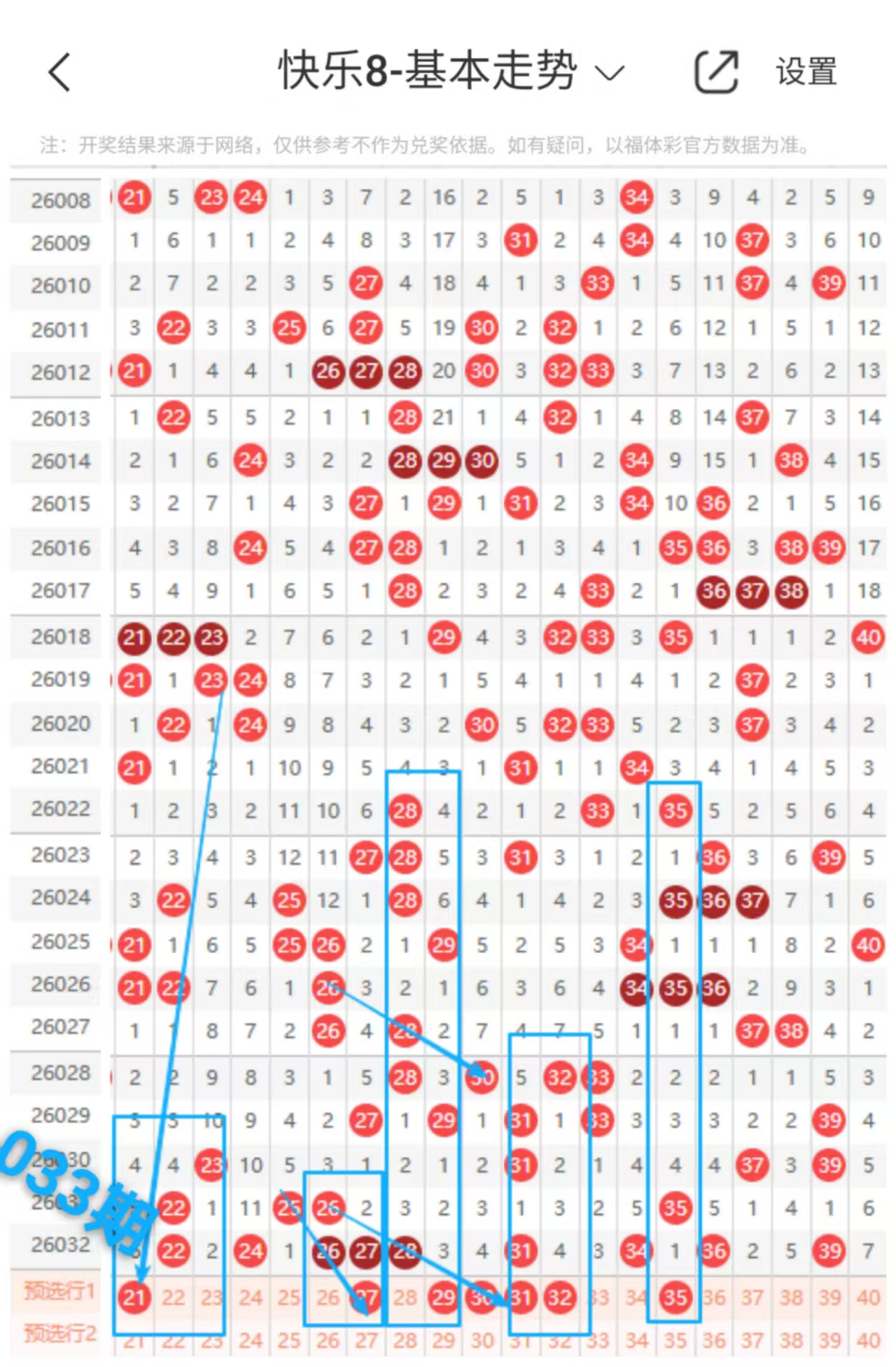 快乐八033期走势分析(本期机会不错+继续跟上吃肉)
