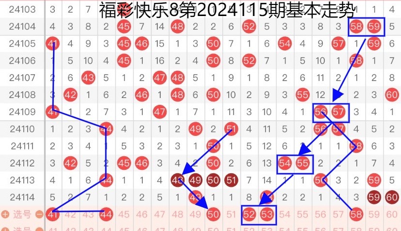 下面是我对2024115期福彩快乐8的分析,希望通过我的分析能让大家今晚大满贯!福彩快乐8上期开奖号码:第一区(1-20)01.05.07.10.15.16.19第二区(21-40)24.26.34第三区(41-60)49.53.59.60第四区(61-80)61.66.68.69.71.78和值791,奇偶比:11:9,区间比:7:3:4:6通过上期的回顾,接下来咱们分析本期号码。