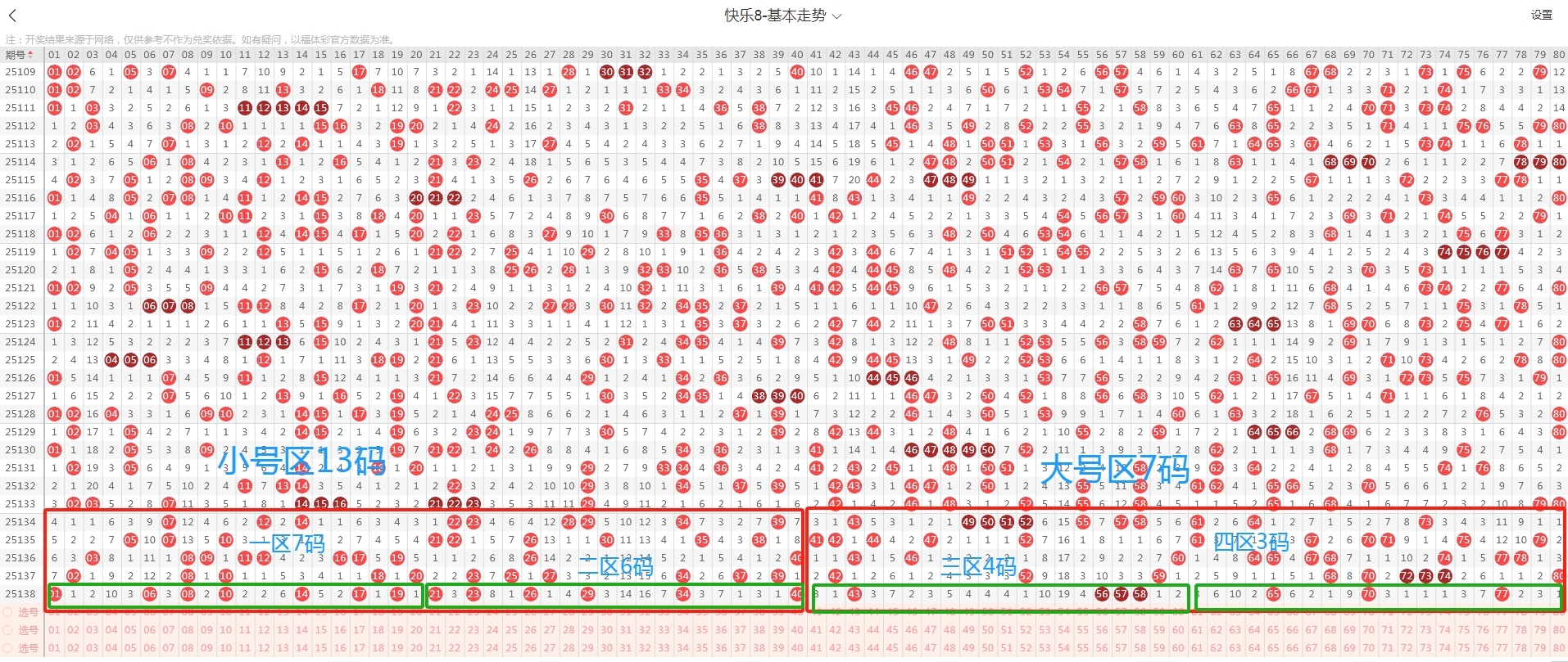 二、快乐八2025138期数据汇总与分析: