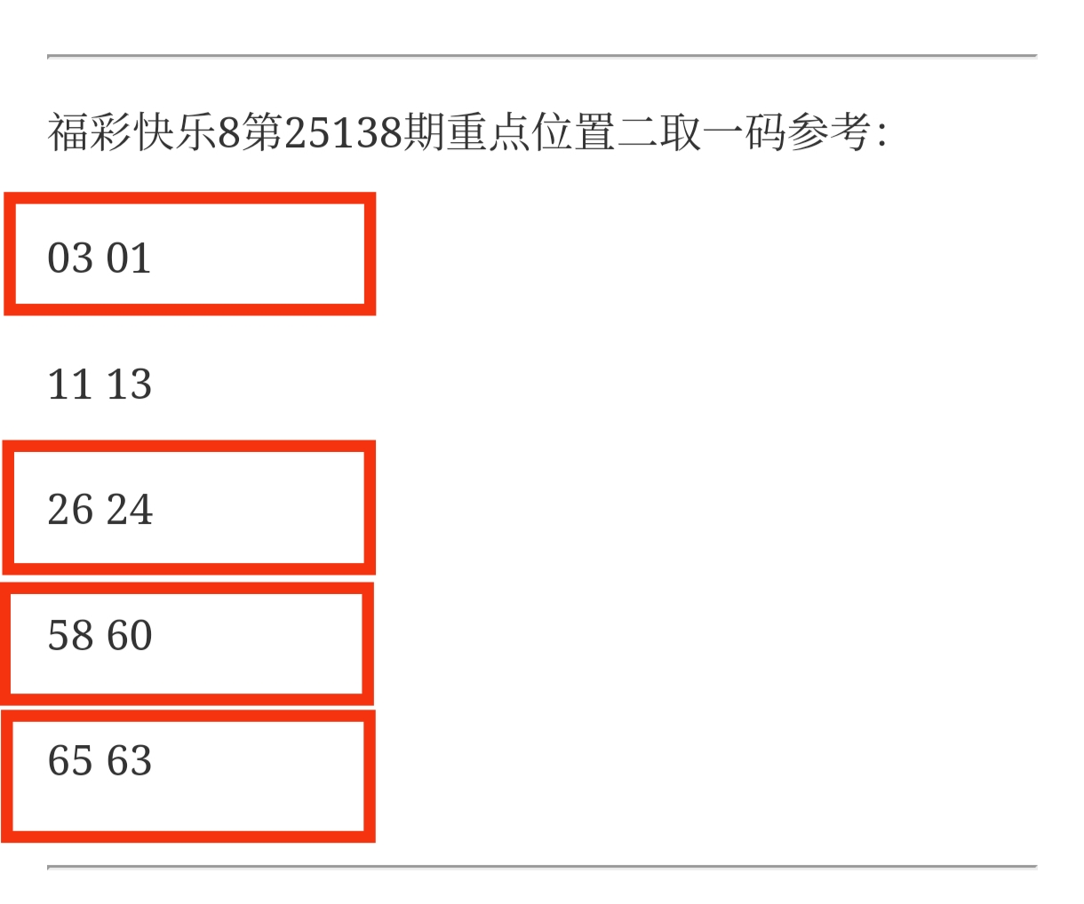 快乐8第25138期: