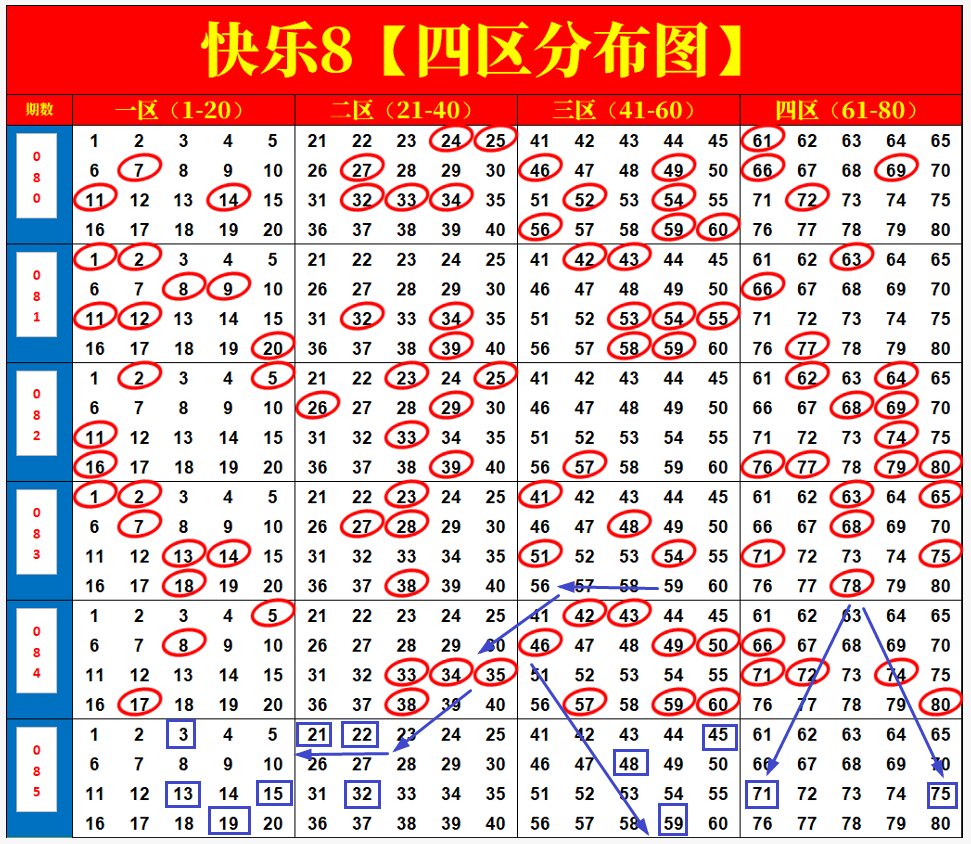 快乐8第2026085期尾号、四分区分析,且看本期画线!